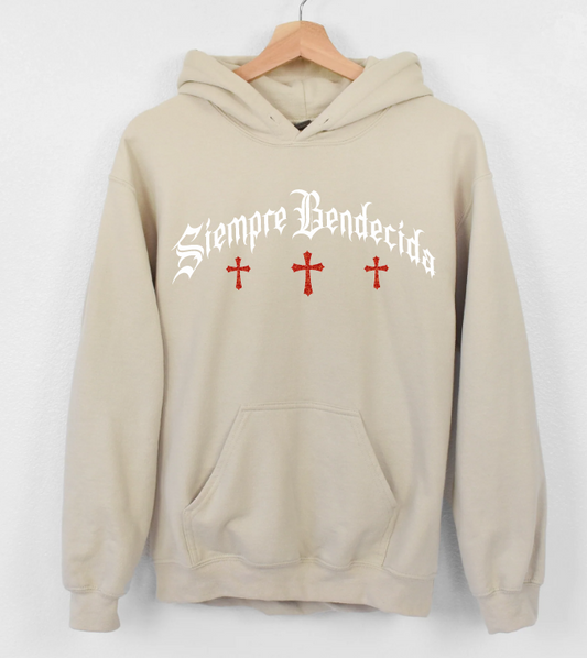 SIEMPRE BENDECIDA - RHINESTONES - UNISEX - SAND HOODIE