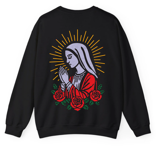 ALWAYS BLESSED - PINK VIRGIN - BLACK CREWNECK